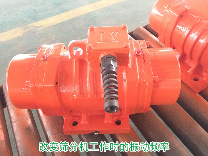 可改變篩分機(jī)工作時(shí)的振動(dòng)頻率與其自身固有的振動(dòng)頻率為不一致的頻率,可通過(guò)振動(dòng)電機(jī)改變篩分機(jī)的振動(dòng)頻率從而達(dá)到防止共振的目的。(可調(diào)節(jié)電機(jī)兩端的偏心塊夾角來(lái)改動(dòng)激振力的大小,夾角小,激振力變大,振幅變大;反之,夾角變大,激振力變小,振幅變?。?/p>