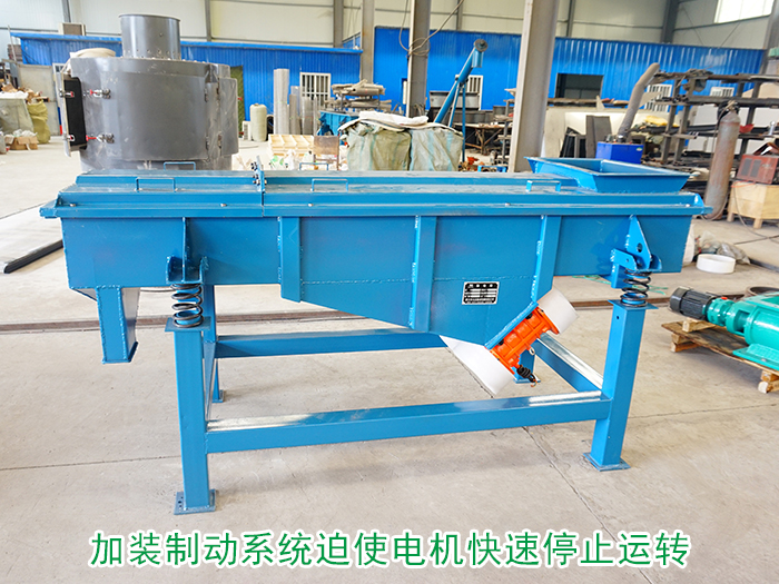 篩分機(jī)停機(jī)時(shí)因?yàn)閼T性會(huì)在某個(gè)特定時(shí)間段振動(dòng)頻率與篩機(jī)本身頻率一致從而發(fā)生共振,可在篩分機(jī)上加裝制動(dòng)系統(tǒng)在停車(chē)時(shí)給振動(dòng)電機(jī)加入反向電流,迫使電機(jī)快速停止運(yùn)轉(zhuǎn),使振動(dòng)頻率跳過(guò)篩機(jī)自身固有振動(dòng)頻率從而達(dá)到防止共振的目的。